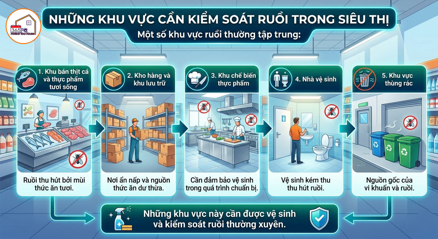 3. Những khu vực cần kiểm soát ruồi trong siêu thị