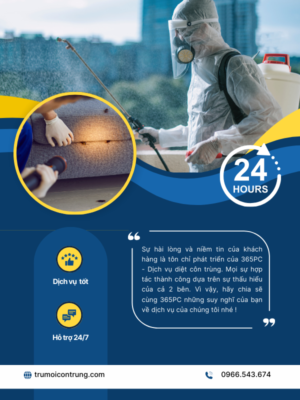 Hãy để lại đóng góp phía dưới, để chúng tôi có thể hỗ trợ bạn tốt hơn. Cũng như chúng tôi sẽ ngày một hoàn thiện và nâng cao chất lượng dịch vụ tại 365PC – Kiểm soát côn trùng. Xin chân thành cảm ơn !