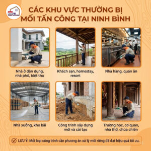 Xử lý mối Ninh Bình là nhu cầu ngày càng phổ biến khi mối xuất hiện nhiều tại nhà ở, công trình xây dựng, nhà xưởng và cơ sở kinh doanh. Với đặc điểm khí...