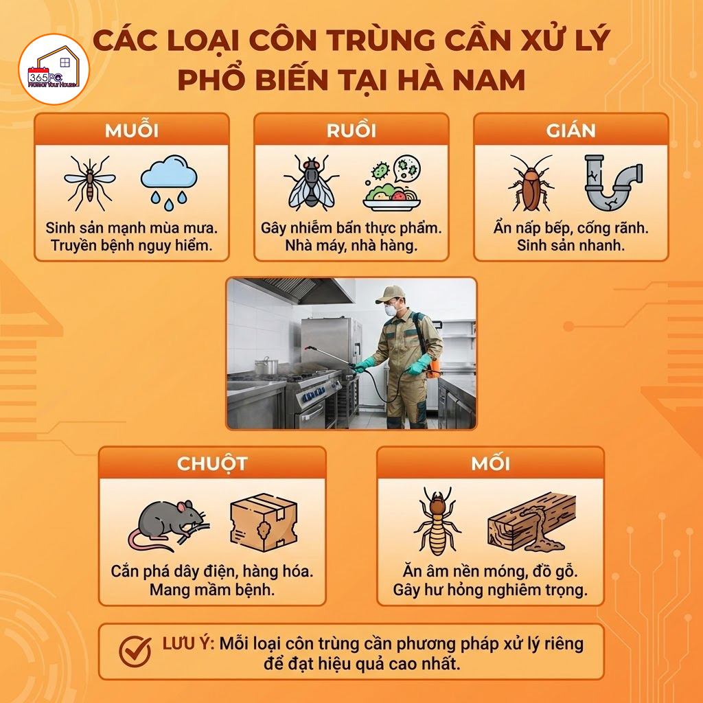 Dịch vụ xử lý côn trùng tại Hà Nam thường tập trung vào: